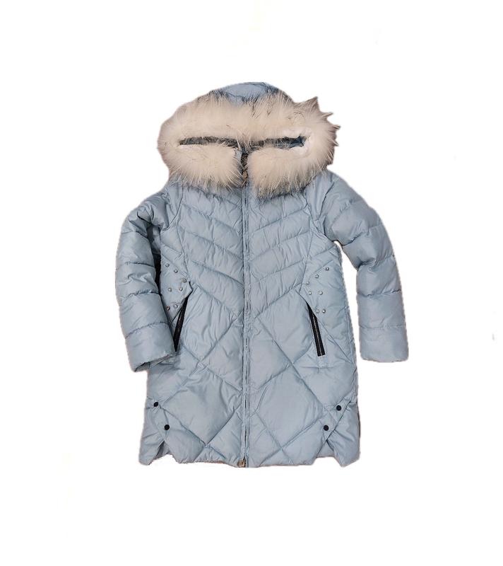 Зимове пуховик стьобний 8/9 років, зріст 134 см, ніжно- голубого кольору, біо-пух