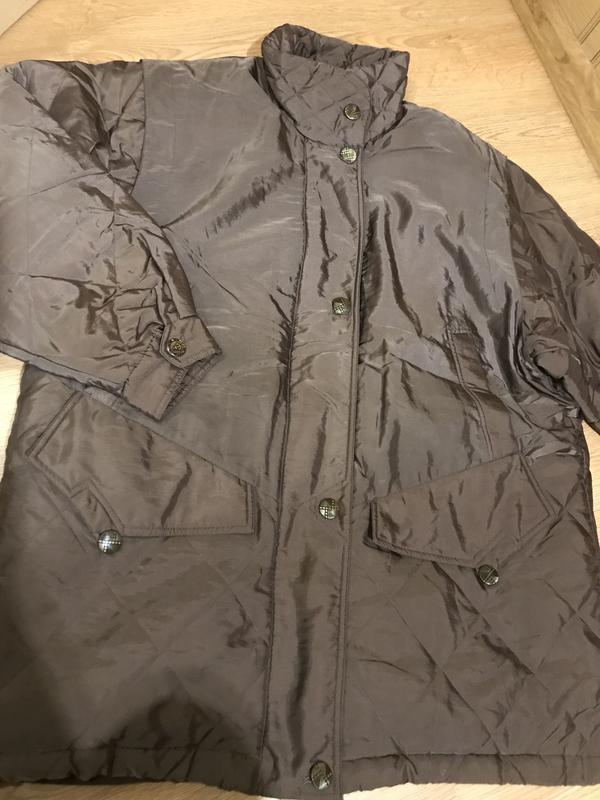 C&A жіноча куртка-пуховик кавового кольору з переливом без капишона куртка з 5 карманами на змійці і пуговиця як би для красоти Гарна куртка легка зручна а головне тепла не тонка знизу затяжник фіксує як Вам зручно Розмір 50 Плечі 50см ПОГ 68 Низ 68 Довжина 86 Рукав від плеча 59см