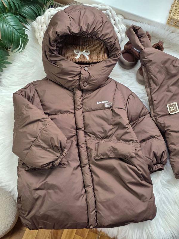 Має 2 кишеньки, застібка-блискавка Верх - плащова тканина, всередині утеплювач синтипух, підклад - нейлон. Сумочка в комплекті. Модель вільного крою, занижена, ворот- стійка захищає від вітру. ЗАМІРИ Рукав від капюшона 110 - довжина 53 ширина 48 рукав 44 120 - довжина 57 ширина 50 рукав 50 130 - довжина 60 ширина 52 рукав 51 140 - довжина 63 ширина 54 рукав 56