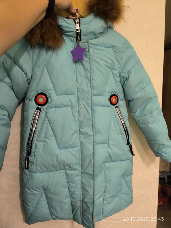 пуховик на дівчинку 6-7 років, м'ятно блакитний колір більш до тіффані, ідеальний, не збитий тінсулейт і біопух, дуже теплий, є манжети