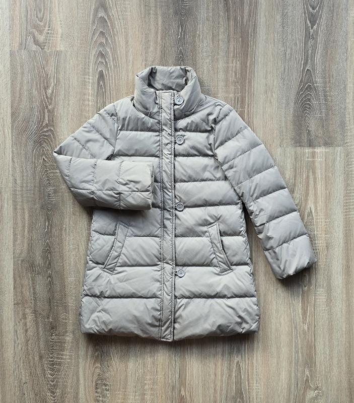 Дуже стильний пуховик від якісного бренду uniglo.Колір світло-оливковий.Стан дуже гарний,не сбитий,теплий та м'який.Загубили капюшон,показала на останьому фото.Можно доповнити образ шарфом.Нюансів не має.Заміри: Довжина 68см,рукав 52см.Плечі 33см,талія 43см,трохи нижче бедра 48см.Розраховуйте запас трішки,бо це пуховик.
