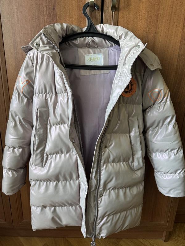 Красивый перламутровый цвет Теплый наполнитель Капюшон снимается Застежка молния + кнопки Качественная подкладка Состояние очень хорошее / почти как новое (без пятен и повреждений) Подойдет на возраст около 10 лет. Довжина куртки-70 см. Длина рукава-52 см. Ширина плечей-44 см