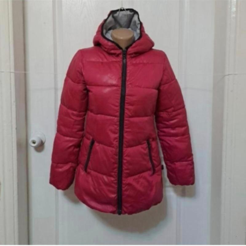 Оригінал- United Colors of BENETTON. Зовнішня тканина, щільна, глянсова. Колір рожевий, фуксія. Камера передала як червоний, але це не так. Гарний, якісний, теплий і м'який пуховик, чудово захистить від холоду та опадів, підійде на холодну осінь і зиму. Дуже зручна модель, продумана до дрібниць, глибокий капюшон, захист горлечка. Заміри: Довжина — 70 см. НОГ — 46 см. ПOT-43 см. НОС-48 см. Довжина рукава від капюшона — 68 см.