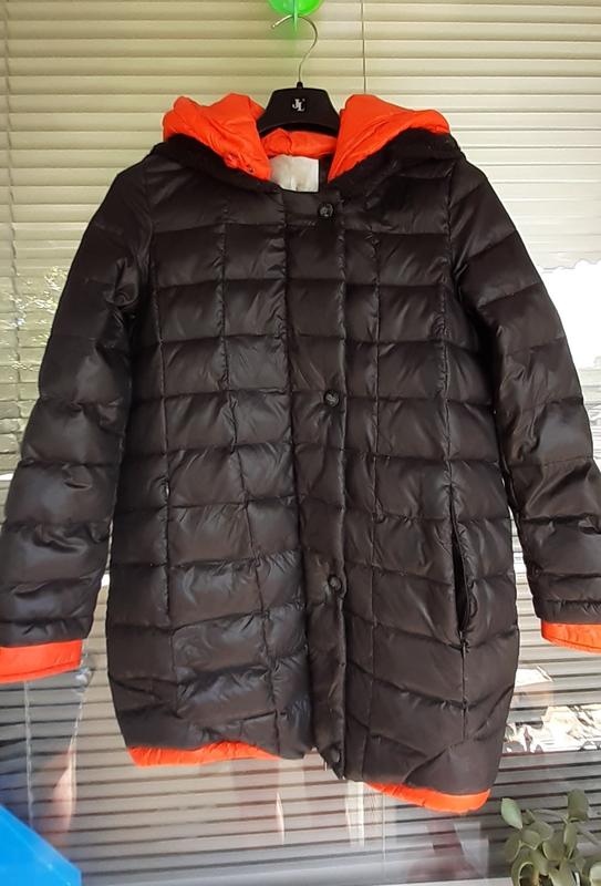 Size 140 см , материал : 100 % Polyester ( 90 % Down , 10 % Feather ) Длинна – 63 см- сзади, 69 см – впереди, рукав – 54 см, плечи – 34 см, ПОТ – 47 см, ПОГ- 44 см Пуховик зимний с капюшоном (отстегивается) застегивается молнией + заклепки в идеальном состоянии, можно одевать при t = - 25 ° c Пуховик ультратонкий, очень легкий с водонепроницаемой и ветрозащитной ткани