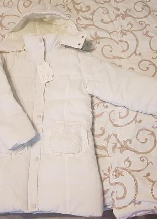 Пуховик для дівчинки білого кольору. Абсолютно новий, з етикетками, придбаний в Італії. На кишенях вышивка - сніжинки. Склад - 65% коттон, 35% поліестер. Наповнювач - синтепон. Пуховик на блискавці і на закльопках. Капюшон знімний. Розмір - 12. Заміри: довжина - 71 см, ширина під грудьми - 50 см, довжина рукава - 51 см. Всі заміри та склад є на фото. АКЦІЯ! При покупці цієї речі, ви можете вибрати на моїй сторінці будь-яку прикрасу з поміткою "безкоштовно" в подарунок!