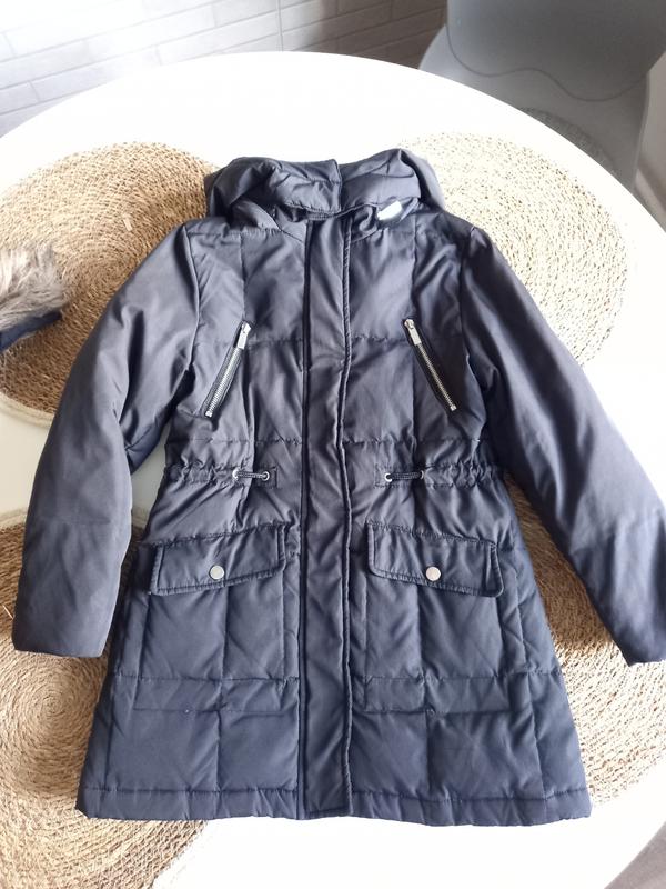 стан ідеальний розмір 122 довж.59 см пл.30 гр.36 рук.44 см капішон відщіпається,мех також. є стяжка на талії.замки всі робочі. куртка не затерта тепла. пух 60 % перо 40 %