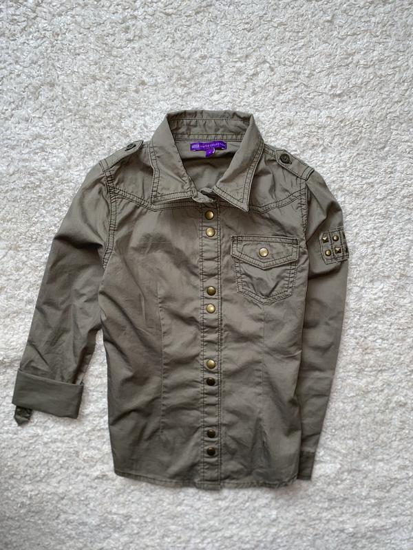 У відмінному стані на 8 років) Довжина по спинці 50 см, плечі 8 см, рукав 46.5 см, з пахви до манжета 35.5 см, ширина під руками 36 см! Дуже класна сорочка)