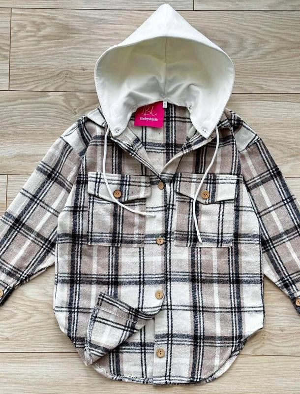 модняшка Супер стильна сорочка з капюшоном! Сорочка подовжена, застібається на гудзики. Є накладні кармани. Капюшон знімається (на гудзиках). У капюшоні є утяжка-шнурок. Тканина - турецька байка. Супер якість! Заміри: 134 - довжина - 61см, напівобхват грудей - 45см, рукав від горловини - 56см. 140 - довжина - 63см, напівобхват грудей - 47см, рукав від горловини - 58см. 146 - довжина - 67см, напівобхват грудей - 48см, рукав від горловини - 60см. 152 - довжина - 69см, напівобхват грудей - 49см, рукав від горловини - 63см.