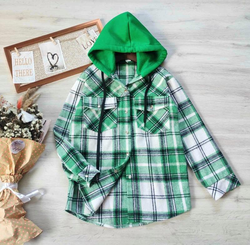 ландыш В НАЯВНОСТІ!!! Теплая рубашка с капишоном Застегивается на кнопки. Ткань - плотная турецкая байка Капишон-турецкая трехнить на байке 140(2 шт)-длина 57, пог 42,рукав от горловины 58 146(2 шт)-длина 58,пог 43,рукав от горловины 60 +-1 см
