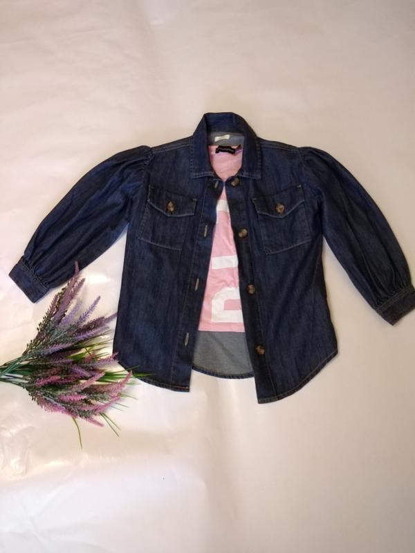 Рубашка джинсова на дівчинку 6р Довж 51см По Гр 38см Плече 10см Рукава 40см Класно дивиться під футболочку або топ на розпвшку.