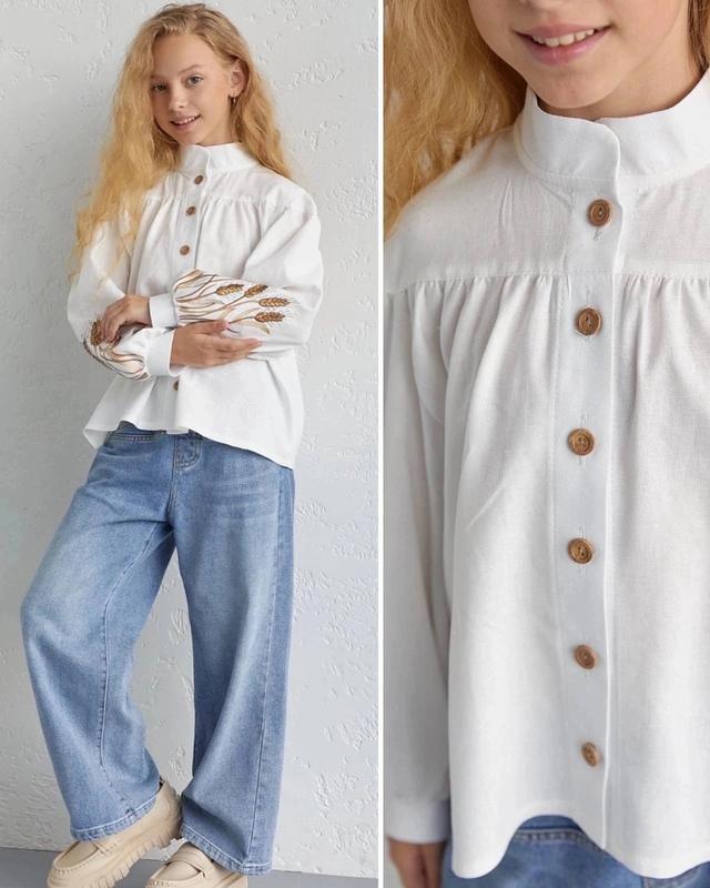 Ландыш В НАЯВНОСТІ Оригінальна рубашка в сучасному стилі з українською вишивкою Рубашка вільного крою Тканина льон натуральний ЯКІСТЬ ЧУДОВА! РЕКОМЕНДУЮ!!! 134-(3 шт)-довжина 49,пог 51,рукав 43/54 140-(4 шт)-довжина 51,пог 56,рукав 44/57 146-(2 шт)-довжина 54,пог 56,рукав 46/60 152-(3 шт)-довжина 60,пог 58,рукав 49/63 158-(2 шт)-довжина 64,пог 60,рукав 52/66