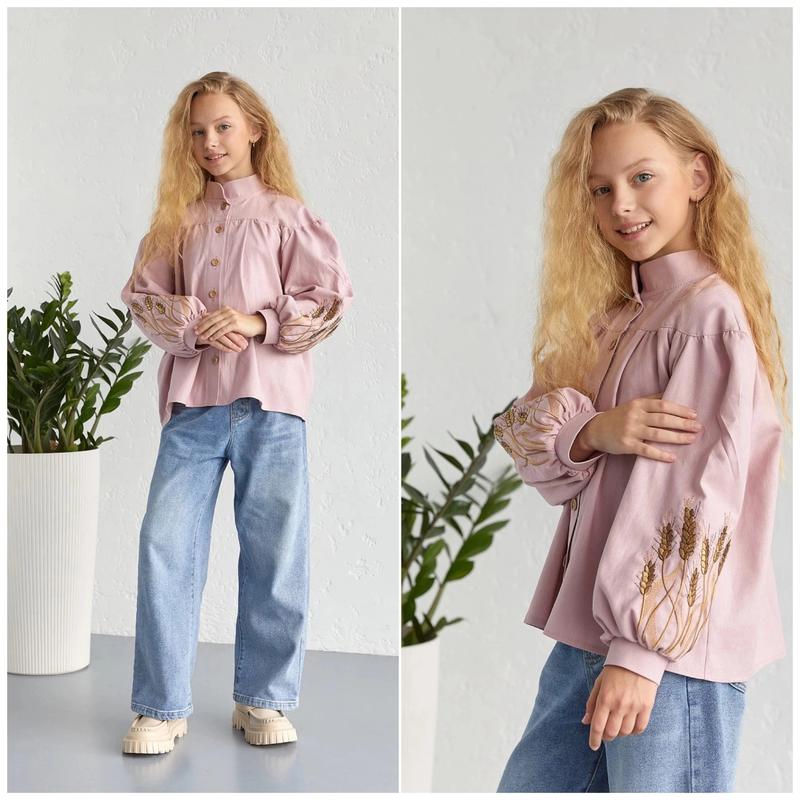 М 🧡 В наявності🧡 Оригінальна рубашка в сучасному стилі з українською вишивкою Рубашка вільного крою Тканина льон натуральний,не колеться заміри:довжина/рукав від горловини 134-49/57 152-60/66 158-64/72 +-2см 134-1шт 152-1шт 158-1шт