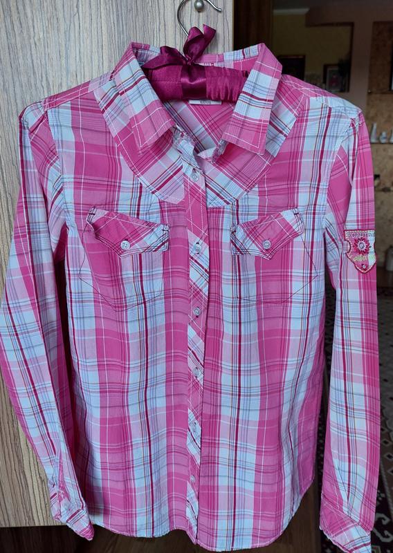 Рубашка на девочку. Размер на рост 164, состав ткани 100% хлопок, состояние идеальное. Дополнительные фото и замеры по запросу.