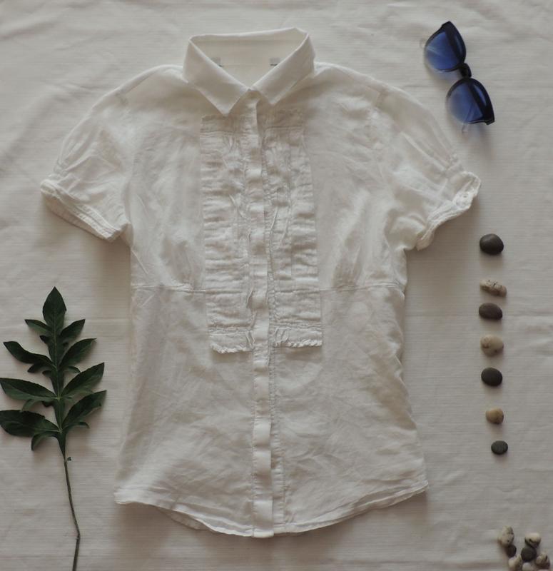 Біла блузка дуже ніжна батистава всередині планка гарно буде носити з топами бо з майкою під руками 42-48 під грудьми 35-39 візуально підліткова