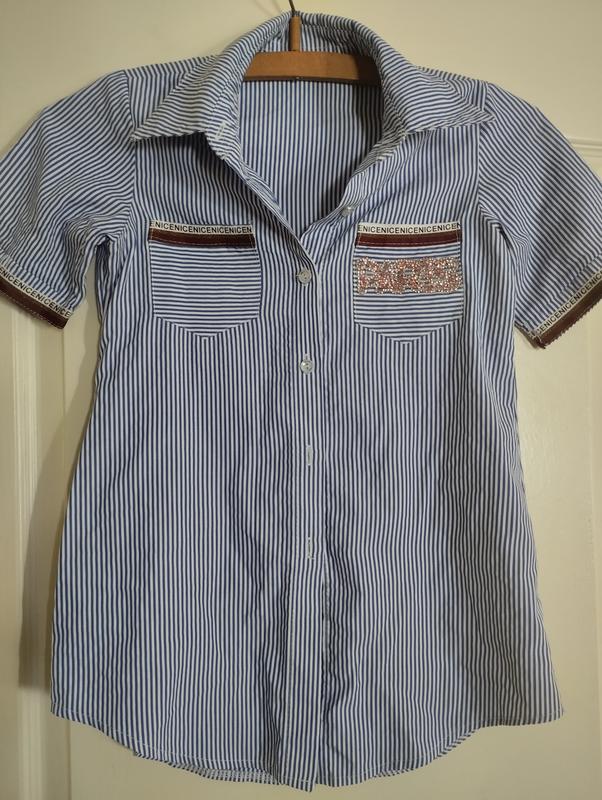 в дуже хорошому стані, приємна тканина, розміру на бірці- немає, лише зріст - 146, по плечам -36,під пахвами 41, довжина 68, носиться поверх брюк