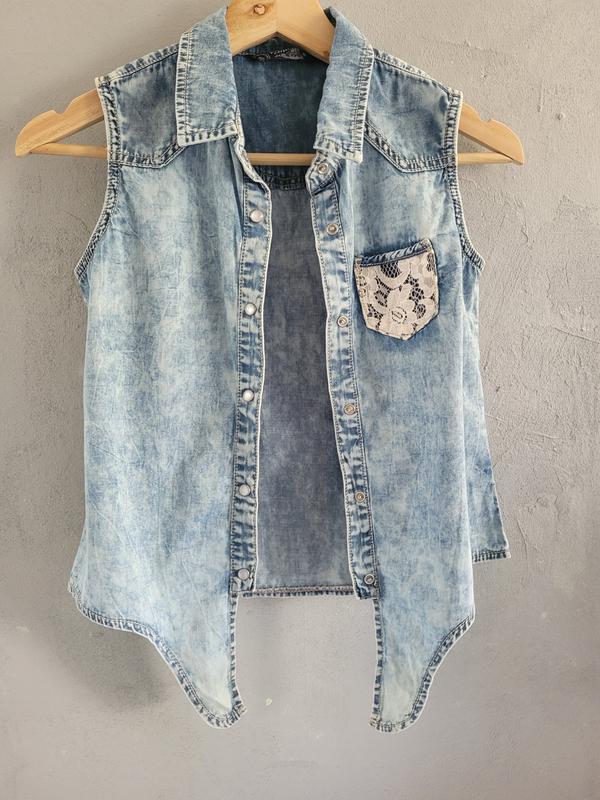 Для маленькой модницы, стильная джинсовая блуза, в идеальном состоянии, на возраст 9-10 лет Замеры по запросу