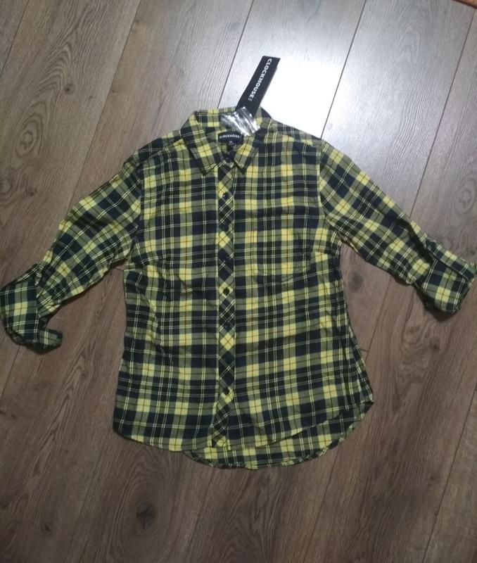 Сорочка в клітинку clockhouse розмір 155 см (xs) дивіться заміри довжина 56 см, рукав 54 см, по плечах 34 см, пог 41 см колір вживу яскравіший жовто- чорний