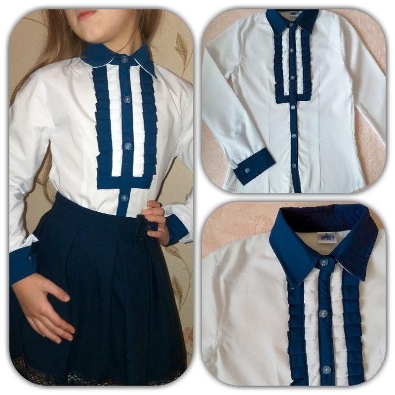Красивая Школьная блузка-рубашка для девочек,с синими и темно-синими(черными) вставками,очень красиво смотрится. Размер на 11, 12 лет 100% хлопок Узбекистан.качество супер. Оринтируетесь на замеры 10лет. - длина по спинке - 54 см., рукав - 50 см. грудь - 36 см. проданы 11лет - длина по спинке - 56 см., рукав - 51 см. грудь - 38 см. 12лет - длина по спинке - 58 см. рукав - 52 см. грудь - 39 см. Все замеры делала только одной ростовки, могут быть погрешность до +-1 см