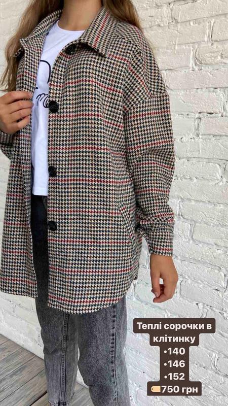 Тепла сорочка в трендову «гусячу лапку» Ще є два кольори клітинки -чорно біла і синя Розміри: •140 •146 •152 Заміри за запитом