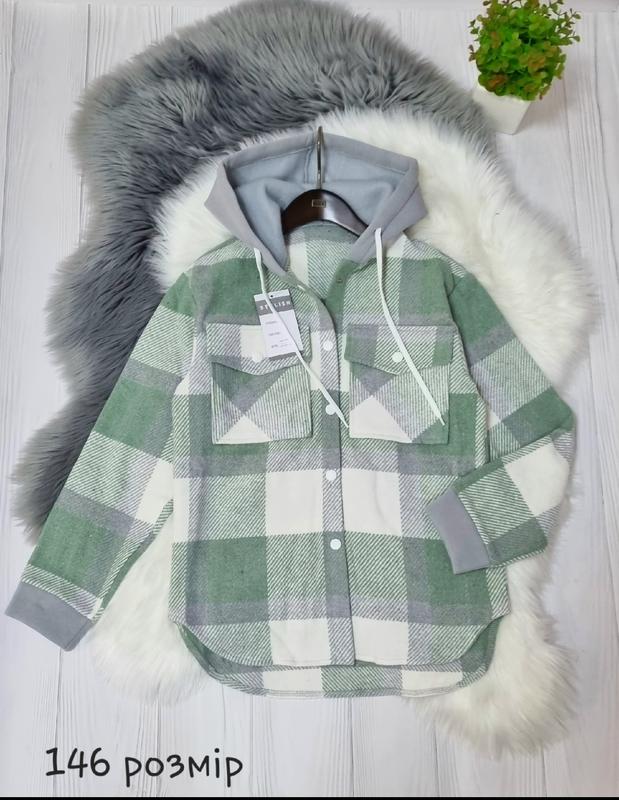 Стильна сорочка для дівчинки Тканина плотна сорочкова, капюшон і манжети трьохнитка Застібається на кнопки В капюшоні робочий шнурок ЧУДОВА ЯКІСТЬ РЕКОМЕНДУЮ! ПОВНОМІРНІ 146 (1 шт)-довжина спереду 62, рукав від плеча 53, пог 44