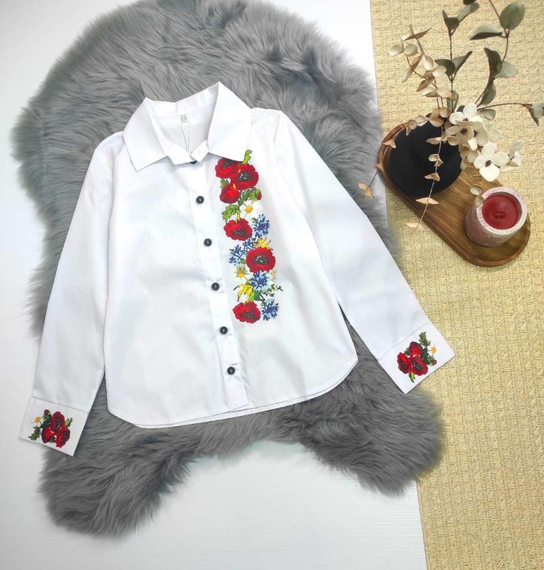 Стильна сорочка з накатом вишивки маки