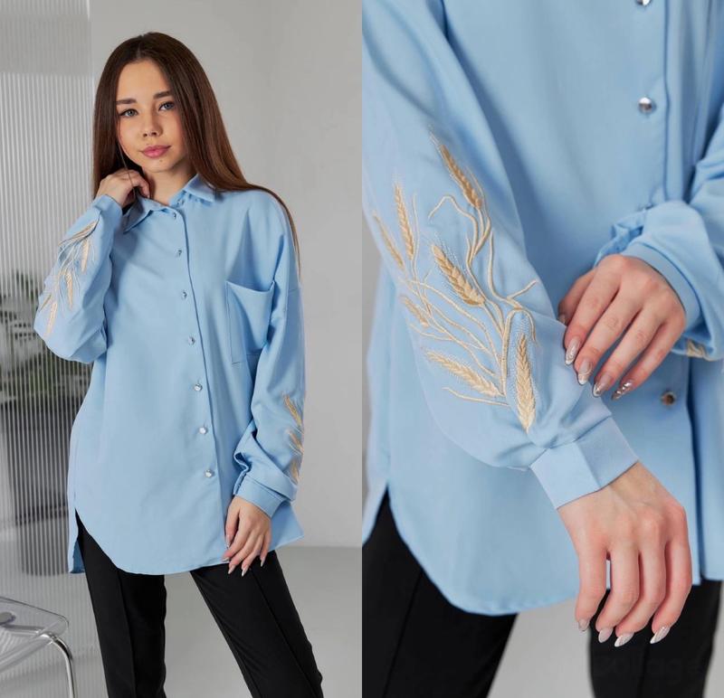 арт 4810 НОВИНКА! Сорочка з вишивкою крою овер на ґудзиках тканина тіар зріст/довжина по переду/пог/рукав від горловини похибка +-2см 140-146/64/53/62-1шт 152-158/68/55/66-1шт 158-164/70/56/69-1шт 164-170/72/58/72-1шт Тан