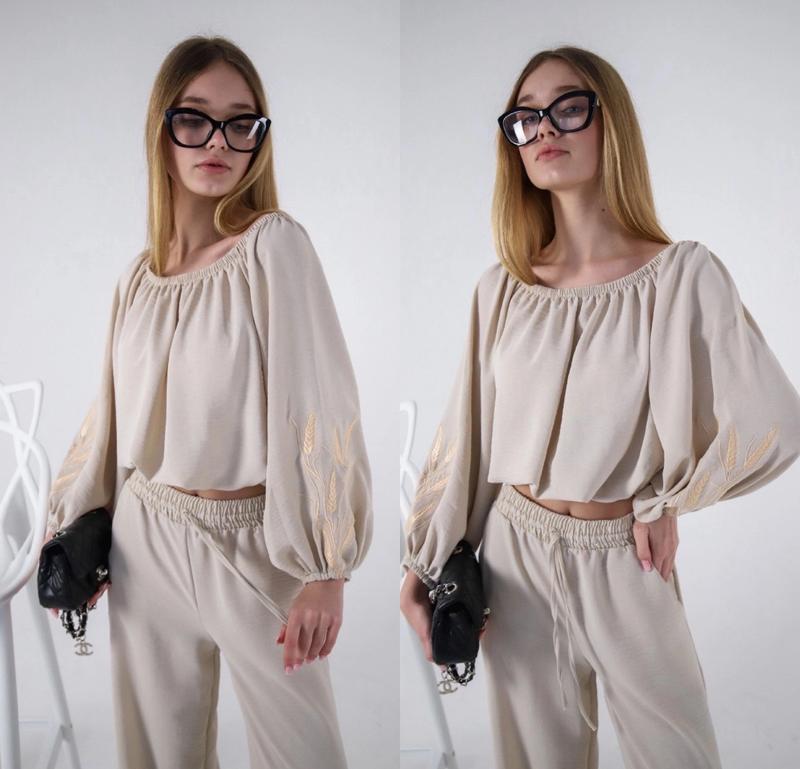 арт 4426 Супер популярна вишивка колоски на трендовій блузі з американського крепу Супер якість ПОВНОМІРНІ Зріст/довж. посередині/пог/рукав похибка+-2см 140-146/31/42/41-1шт 146-152/32/45/45-1шт 158-164/36/46/50-1шт 164-170/39/48/52-1шт