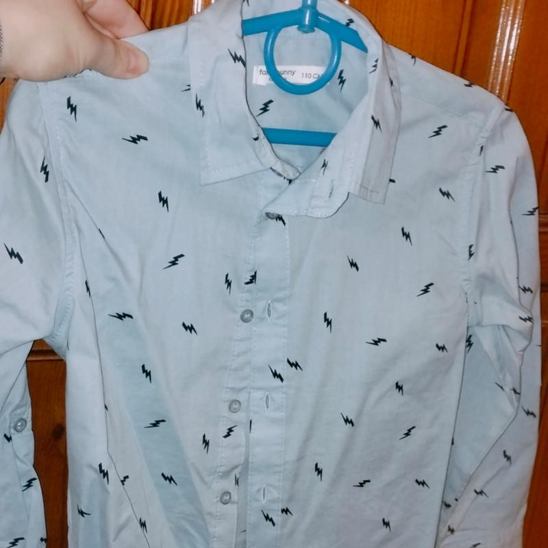 рубашка для хлопчика розмір 110 св.блакитного кольору з молніями. стан нової. один раз одягнули на 1 вересня в садочок і випрана.