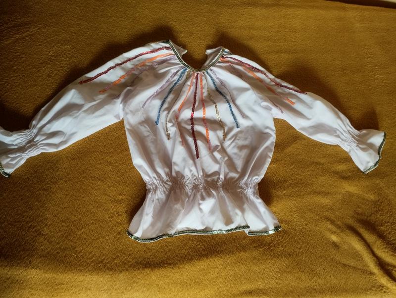 блуза для дівчинки, ріст орієнтовно 116-124,а можливо і 128, це потрібно орієнтуватися по замірам,тому що на блузі не пише)