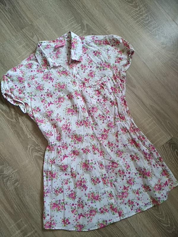 Рубашка в цветочек. Блузка для девочки в состоянии новой ( одета один раз) Стильная, тоненькая, лёгкая🔥🔥🔥 100% cotton
