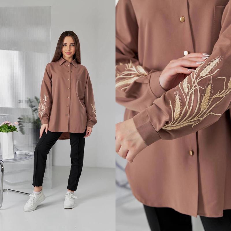 Таня арт 4808 НОВИНКА! Сорочка з вишивкою крою овер на ґудзиках тканина тіар СУПЕР ЯКІСТЬ! зріст/довжина по переду/пог/рукав від горловини похибка +-2см 140-146/64/53/62-1шт 152-158/68/55/66-1шт