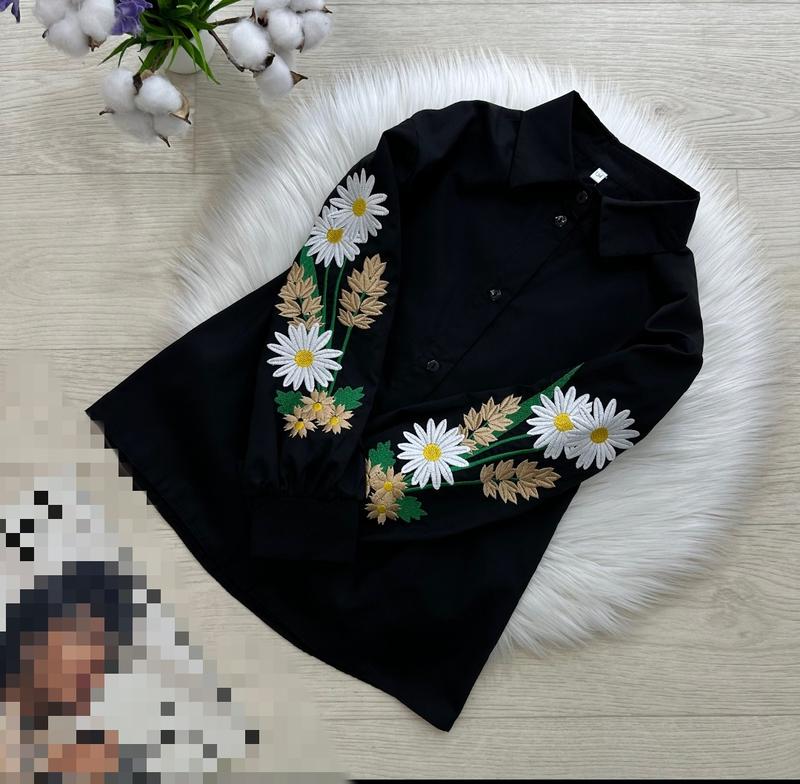 Сорочка в стилі вишиванки 😍😍😍 Класична, стильна та з родзинкою - великі вишиті квіти 🌸❤️🌸 Прямий крій 👌🏻 Ґудзики по всій довжині ✔️ ВИШИВКА 🥰 Тканина: котон поплін 🔝 Виробник: Україна 🇺🇦 ▪️р.140- довжина 54см/ рукав від горловини 55см/ ПОГ 44см. ▪️р.146- довжина 56см/ рукав від горловини 57см/ ПОГ 45см.