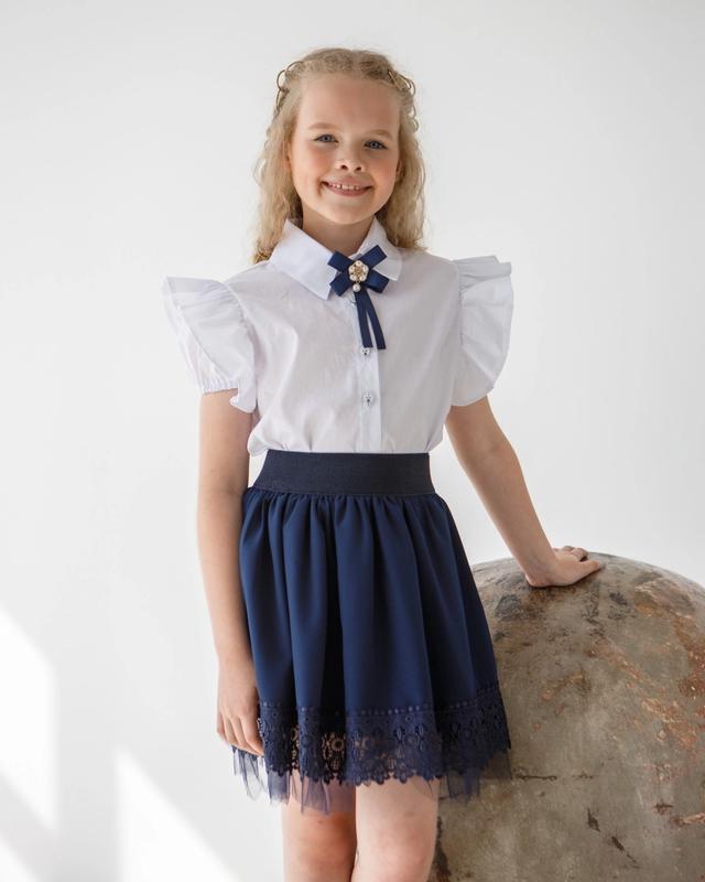 В наявності🧡 Стильна блузка тканина котон застібається на гудзики брошка в комплекті БРОШКА СИНЬОГО КОЛЬОРУ заміри:довжина/пог 140-48/37 146-50/39