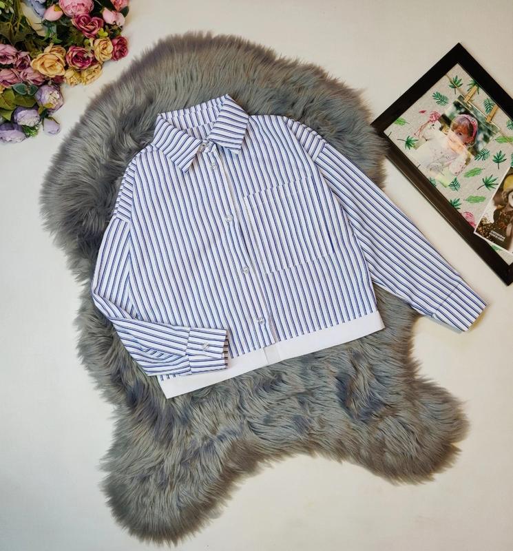Стильна сорочка в полосочку✨ Тканина: Якісний котон заміри -довжина/ пог/ рукав від горловини 140-47/46/59 146-51/48/62 152-54/49/67 158-57/51/68