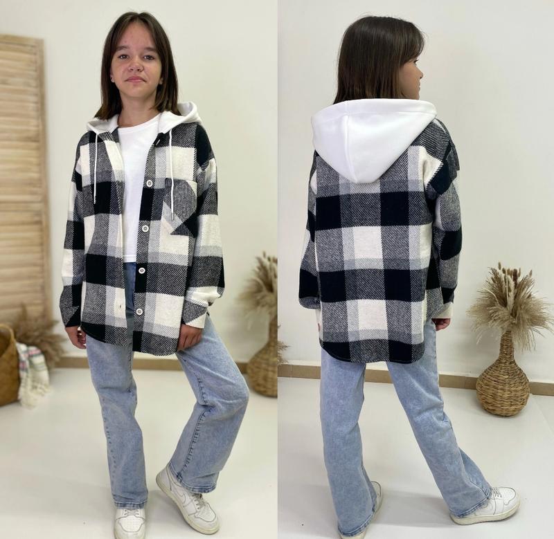 Арт 5412 Тепла сорочка з капюшоном з якісної турецької байки клітинки (щільна) Капюшон тринитка на байці На ґудзиках Рекомендую Зріст/довжина/пог/рукав від горловини похибка+-2см 134/59/45/59-2шт Тан