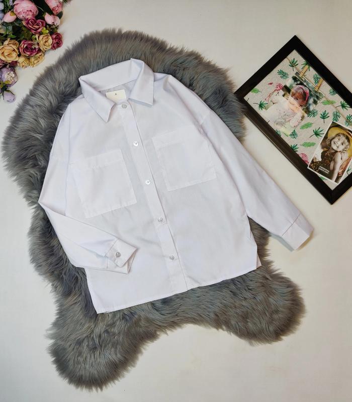 Красивая рубашка в белом цвете✨ кроя овер Ткань: Качественный коттон замеры -длина / пог / рукав от горловин 140-57/48/60 146-59/51/63 152-62/52/66 164-65/56/73