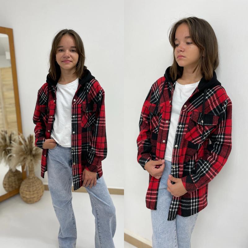 Тепла сорочка Застібається на кнопки. Тканина - щільна турецька байка. Капюшон-турецька тринитка на байці. ГАРНА ЯКІСТЬ! ціна 755 грн зріст/довжина/пог/рукав від горловини похибка +-2см 134/57/41/55-3шт 140/61/42/59-3шт 146/63/43/61-3шт 152/64/44/63-3шт