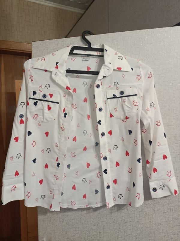Сорочка для дівчинки в червоно-синє сердечка. для маленької школярочки.