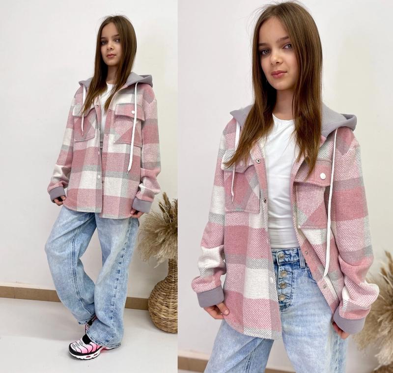Арт 6056 Стильна сорочка Саме те, ще потрібно на любий образ Тканина щільна сорочкова капюшон і манжети тринитка Застібається на кнопки В капюшоні робочий шнурок Супер якість зріст/довжина попереду/пог/рукав від горловини похибка +-2см 158/67/50/72-3шт 164/70/51/75-3шт
