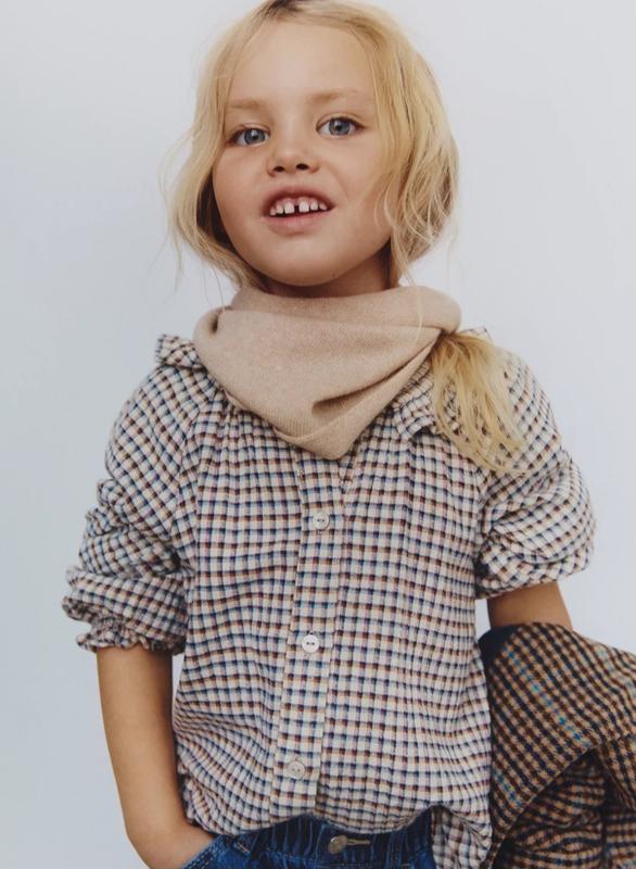 Трендова сорочка в клітинку, натуральна тканина. По бірці 5 років довжина 40, ширина під рукавами 36, рукав від шиї 40