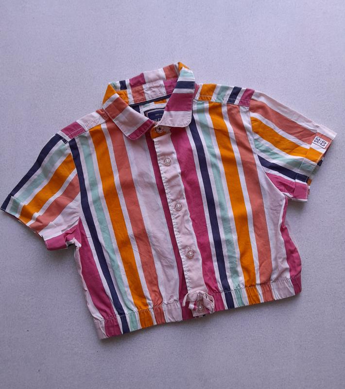 Стильна укорочена сорочка в смужку soulcal&co, розмір 9-10/134-140, довжина від верху плеча 34 см, між плечима 30 см, під підмишками 35 см, рукавчик 14 см.