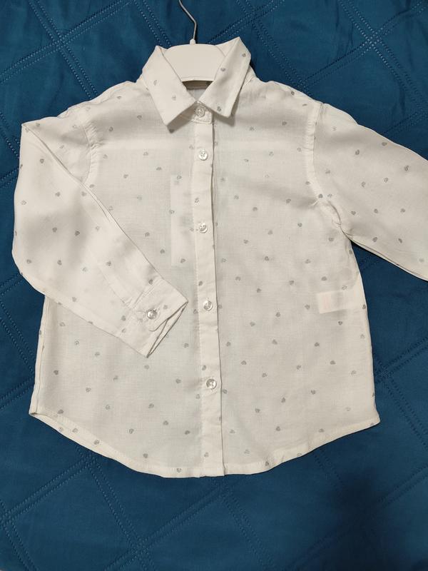 Неймовірно стильна та ніжна сорочка із натуральної тканини із принтом маленькі срібні серденьком це🔥.Довжина 40 см.Плечі 26см.Від однієї підмишки до іншої 30 см.Рукав 31 см .