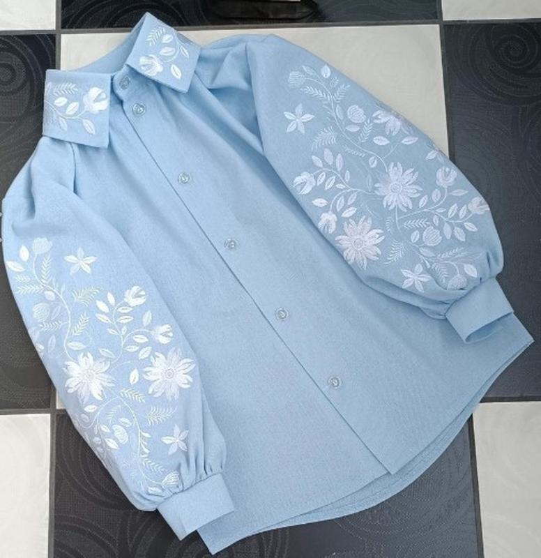 Оригінальна сорочка в сучасному стилі з українською вишивкою Вільного крою Тканина натуральна - льон , не колеться, приємна до тіла. заміри:довж/рукав від горловини/пог 128р-51/51/42 од.д.Р