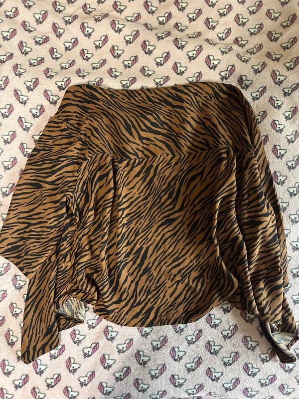 Коричнева блуза з довгим рукавом. Загубився один ґудзик, але якщо носити на завʼязку він там не потрібний. Розмір по бірці м але підійде на xs та s
