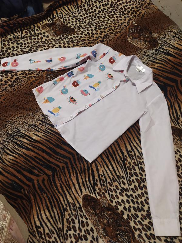 Рубашка милая в принт весёлый Состояние хорошее Замеры дл 51 шир 43 рукав 57 По этикетке 164 рост Но лучше по замерам ориентироваться Пересылаю