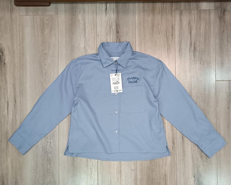 Стильна рубашка, нова. Довжина по спині 54 см, спереду 51см, ширина під руками 46 см, рукав 51см,плече 15 см. Вільного крою.Тканина-бавовна.