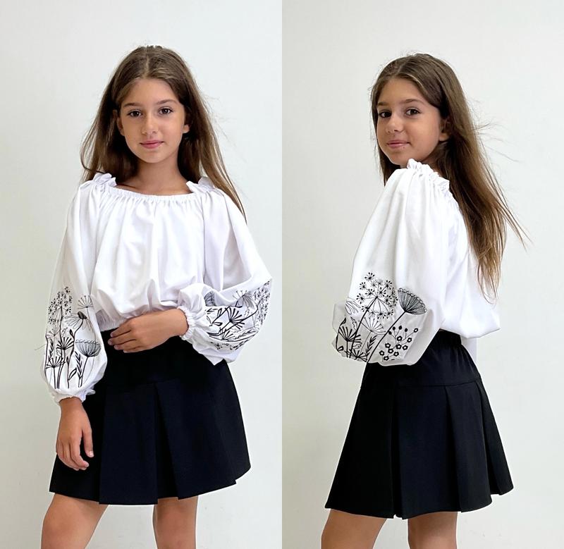 через кнопку купити тільки повна оплата!!! Арт 6703 Вишукана блуза з етнічним акцентом Ніжна справжня вишивка, повністю під резинку тканина супер софт ідеальна посадка — саме те, що потрібно для стильного образу дівчинки! Рекомендую зріст/довжина по переду/пог/рукав похибка +-2см 158-164/39/37/54-1шт 164-170/40/39/56-1шт Тан