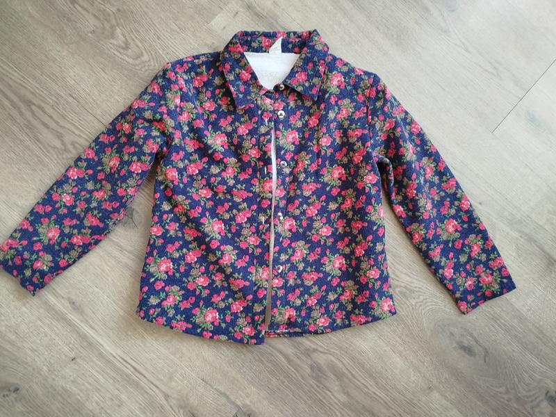 Сорочка темно-синього кольору в квітковий принт.На хутрі,стан відмінний.По бірці 15,буде на 7-9 років.