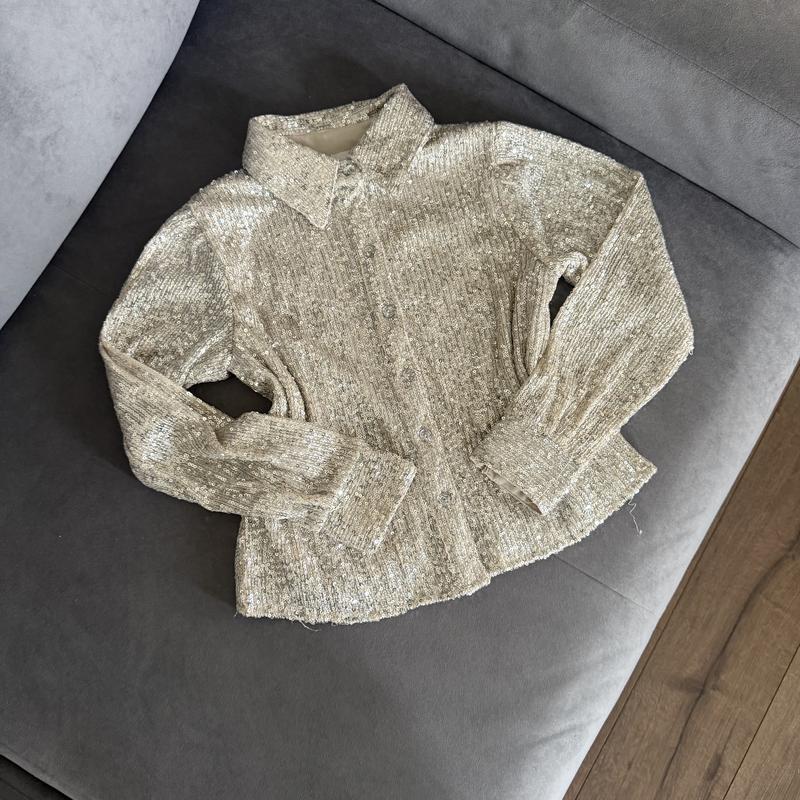 Класна нарядна сорочка в паєтки. Фірми River island. На вік 7-8 років. Довжина 44 см, плечі 31 см, рукав 49 см.