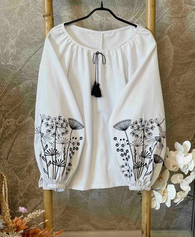 🧡В наявності 🧡 НОВИНКА Шикарна блузка тканина льон з вишивкою,поверху стягується рекомендую м АКЦІЙНА ЦІНА заміри:довж./рукав/пог 128-134-50/54/42